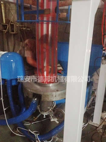 吹膜機(jī)結(jié)構(gòu) | 擠出機(jī),三通,摸頭,風(fēng)環(huán),下架,上牽引,收卷裝置 |