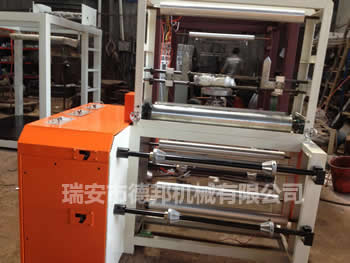 吹膜機(jī)結(jié)構(gòu) | 擠出機(jī)、三通、模具、鋼結(jié)構(gòu)架、上牽引、收卷裝置。 |