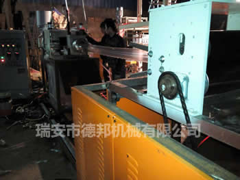 吹膜機(jī)結(jié)構(gòu) | 擠出機(jī)、三通、模具、鋼結(jié)構(gòu)架、上牽引、收卷裝置。 |